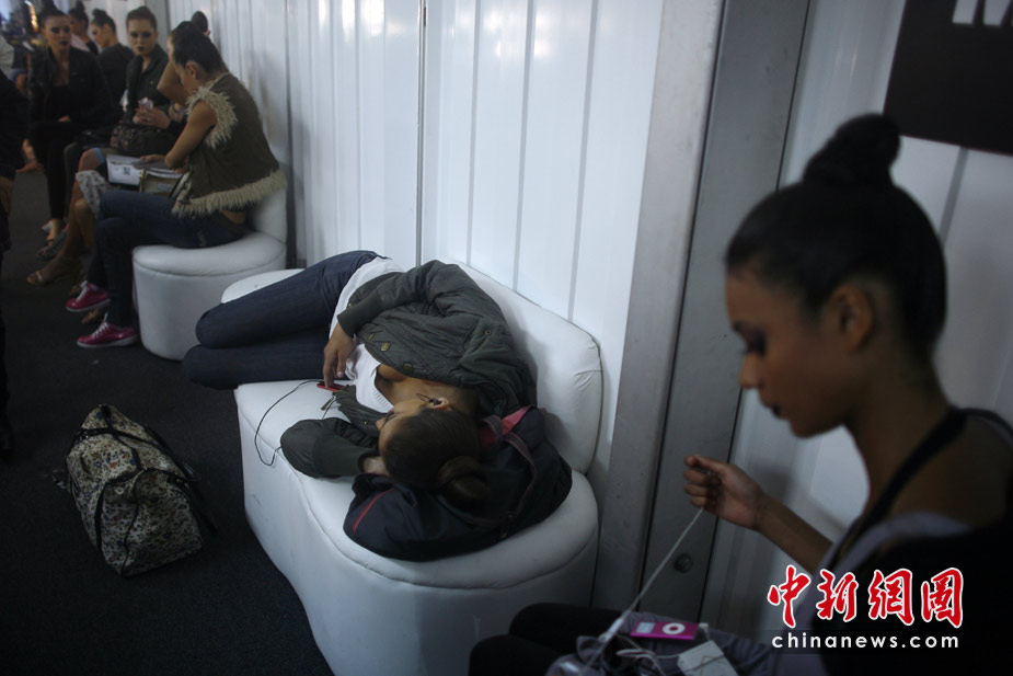 4月13日,墨西哥首都墨西哥城奔馳時裝周,美模們在臺前展現靚麗風采,后臺則讓我們看到了完全不同的世界。