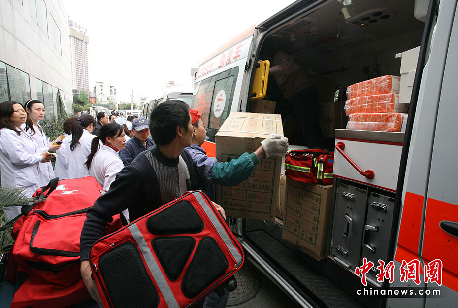 圖為4月14日下午,由四川省醫(yī)院、華西醫(yī)院23人組成的醫(yī)療救援隊緊急趕赴青海省玉樹縣地震災(zāi)區(qū)參與醫(yī)療救援。中新社發(fā) 劉忠俊 攝