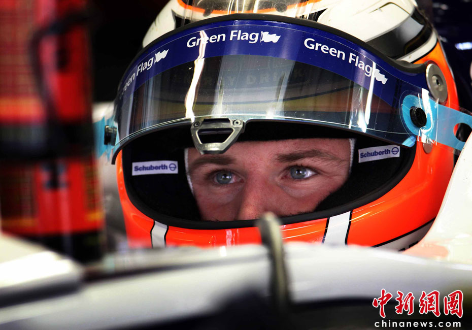 4月16日,2010國際汽聯(lián)F1世界錦標賽上海站在上海國際賽車場開始車手第一、第二次練習賽。圖為代表威廉姆斯車隊出戰(zhàn)的德國車手霍肯伯格。中新社記者 任晨鳴 攝