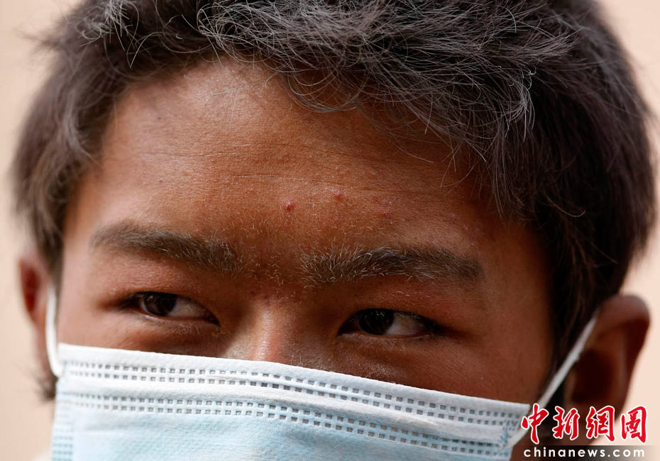 2010年4月16日,青海玉樹(shù)藏族自治州玉樹(shù)縣結(jié)古鎮(zhèn)一所中學(xué)的震災(zāi)救援現(xiàn)場(chǎng),救援人員的頭發(fā)、眉毛都落滿塵土。中新社發(fā) 盛佳鵬 攝