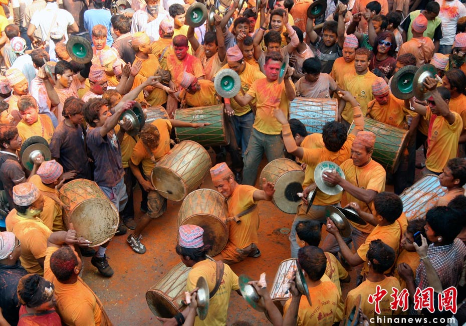 4月15日,尼泊爾迎來一年一度的傳統(tǒng)節(jié)日“尼歷新年”。當(dāng)日全國放假一天,在加德滿都郊區(qū)人們涌上街頭潑灑紅粉慶祝新年。圖片來源:中國新聞網(wǎng)