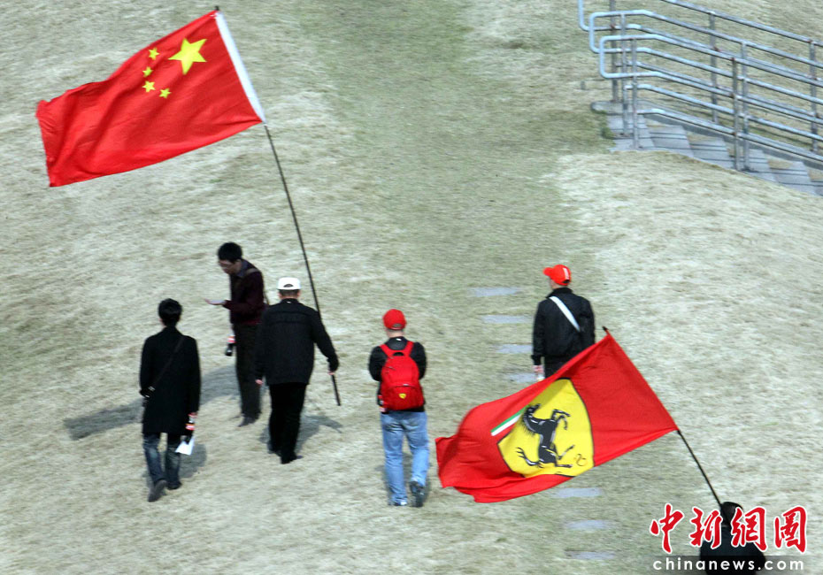 到場觀戰(zhàn)的中國觀眾最中意的車隊還是法拉利。中新社記者 任晨鳴 攝
