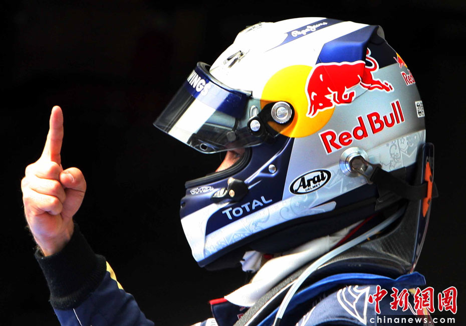 4月17日下午,2010國際汽聯(lián)F1世界錦標賽上海站在上海國際賽車場舉行排位賽,代表紅牛車隊出戰(zhàn)的德國車手維特爾獲得桿位,隊友、澳大利亞車手韋伯獲得第二名,法拉利車隊的西班牙車手阿隆索獲得第三名。中新社記者 任晨鳴 攝