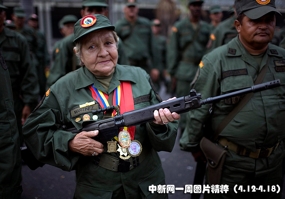 4月13日周二是委內(nèi)瑞拉的“民兵日”,一位老民兵手持步槍在首都加拉加斯參加紀(jì)念活動(dòng)。總統(tǒng)查韋斯當(dāng)天發(fā)表講話,以此紀(jì)念他在八年前被政變短暫推翻后重新執(zhí)政。