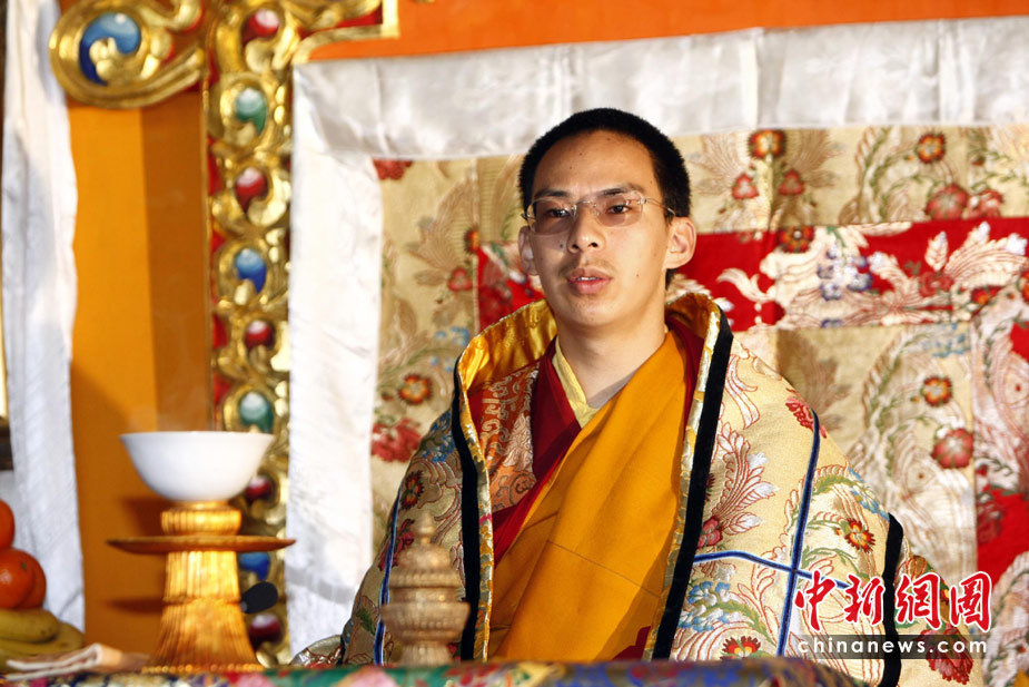4月20日上午9時(shí)許,十一世班禪額爾德尼·確吉杰布在北京西黃寺,為青海玉樹地震遇難同胞舉行超度法會(huì)。中新社發(fā) 杜洋 攝