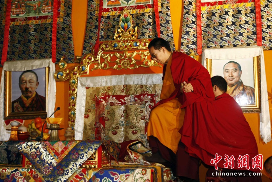 4月20日上午9時(shí)許,十一世班禪額爾德尼·確吉杰布在北京西黃寺,為青海玉樹(shù)地震遇難同胞舉行超度法會(huì)。中新社發(fā) 杜洋 攝