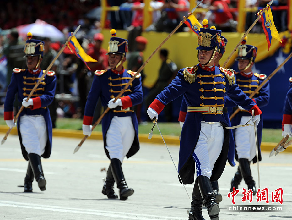 委內(nèi)瑞拉首都加拉加斯19日舉行盛大游行活動(dòng),紀(jì)念反殖民統(tǒng)治爭(zhēng)取獨(dú)立的斗爭(zhēng)開(kāi)始200周年。圖片來(lái)源:中國(guó)新聞網(wǎng)