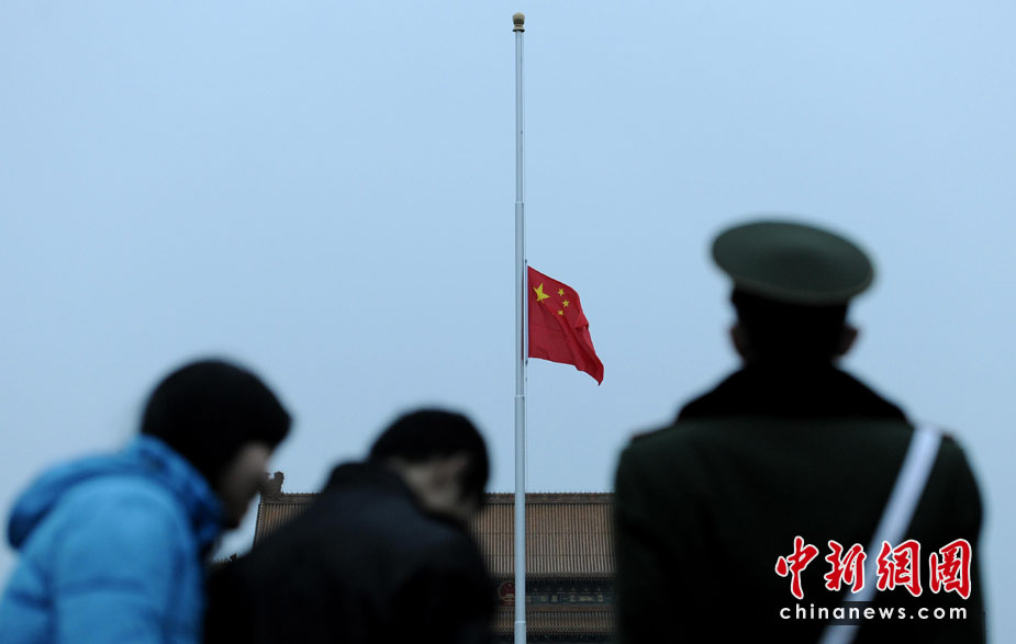 天安門(mén)廣場(chǎng)下半旗志哀