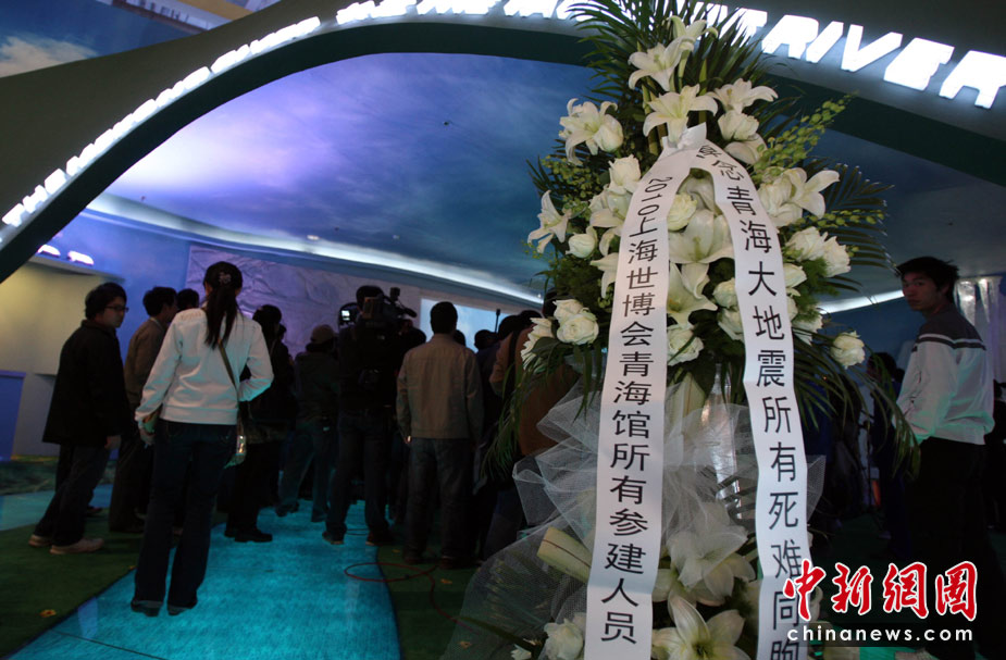 4月21日10點(diǎn),上海世博青海館舉行儀式哀悼玉樹(shù)地震遇難者。當(dāng)日,全國(guó)舉行哀悼活動(dòng),深切哀悼青海玉樹(shù)地震遇難同胞。中新社發(fā) 湯彥俊 攝