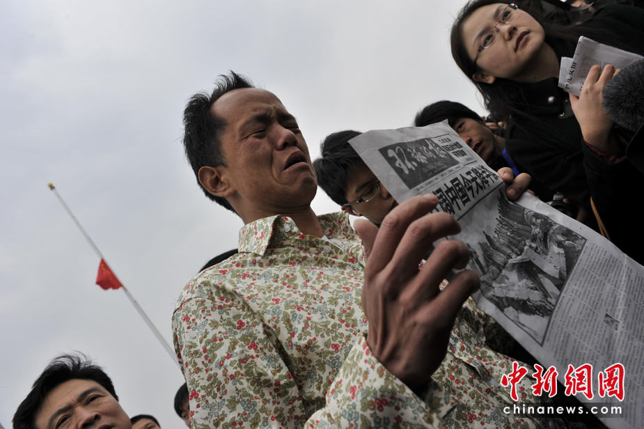 4月21日,為表達(dá)全國(guó)各族人民對(duì)青海玉樹地震遇難同胞的深切哀悼,中國(guó)國(guó)務(wù)院決定,舉行全國(guó)哀悼活動(dòng),全國(guó)和駐外使領(lǐng)館下半旗志哀,停止公共娛樂活動(dòng)。圖為北京天安門廣場(chǎng)上哀悼遇難者的民眾。中新網(wǎng)記者 金碩 攝