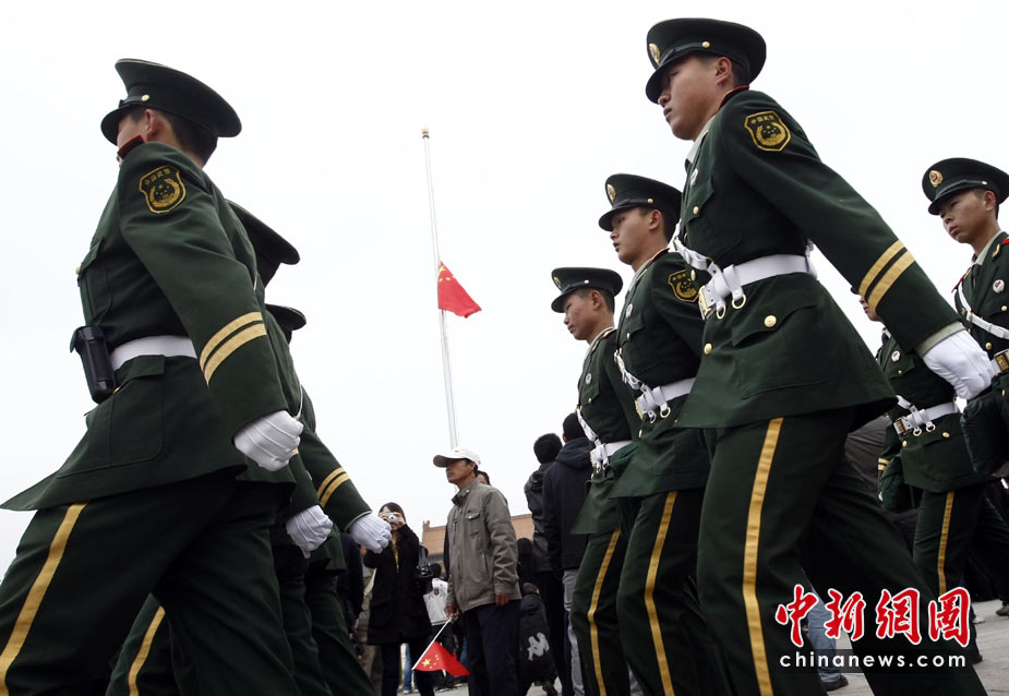 4月21日,為表達(dá)全國各族人民對青海玉樹地震遇難同胞的深切哀悼,中國國務(wù)院決定,舉行全國哀悼活動(dòng),全國和駐外使領(lǐng)館下半旗志哀,停止公共娛樂活動(dòng)。中新社發(fā) 杜洋 攝