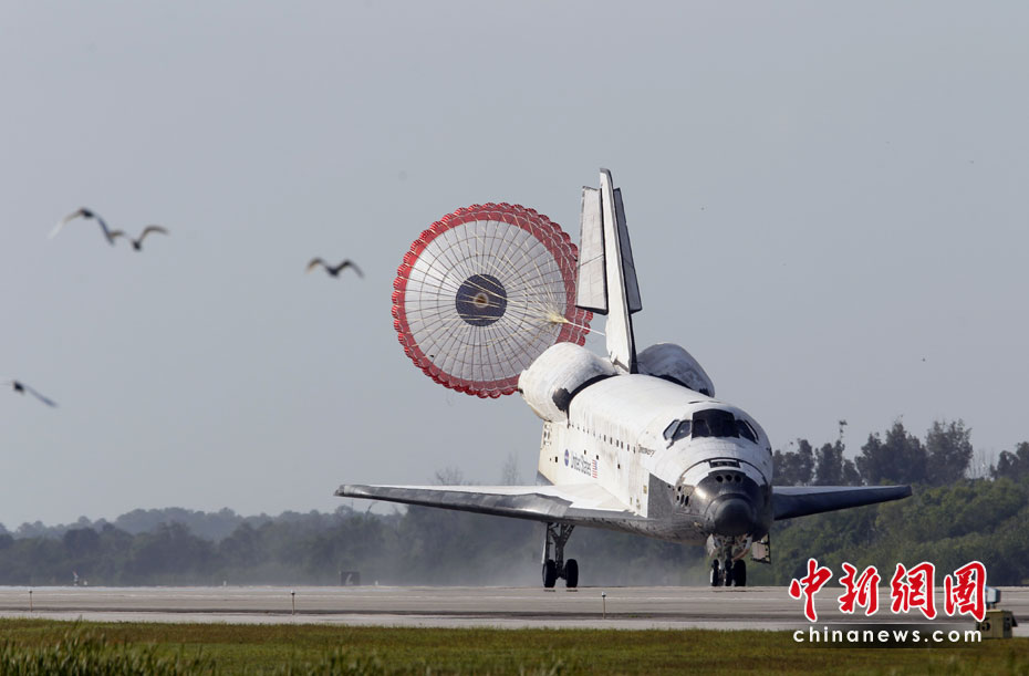 美國發(fā)現(xiàn)號航天飛機于當?shù)貢r間4月20日成功降落在佛羅里達州肯尼迪航天中心,結束了為期15天的國際空間站建設之旅。圖片來源:中國新聞網(wǎng)