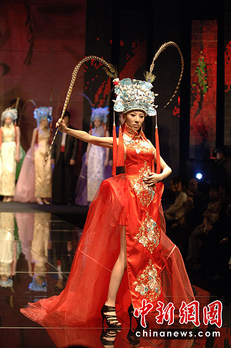 4月20日晚,首屆海西國(guó)際時(shí)裝周在福建石獅閉幕,本屆時(shí)裝周吸引了來自海峽兩岸的紡織服裝界企業(yè)家和知名服裝設(shè)計(jì)師。期間舉辦了12場(chǎng)時(shí)裝品牌和設(shè)計(jì)師作品動(dòng)態(tài)發(fā)布會(huì)。圖為模特展示古今潮流結(jié)合的服裝。王東明 攝