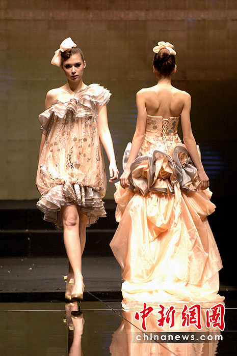 4月20日晚,臺灣著名設(shè)計師蔡美月最新婚紗秀在福建石獅上演。當(dāng)日,首屆海西國際時裝周在福建石獅閉幕,本屆時裝周吸引了來自海峽兩岸的紡織服裝界企業(yè)家和知名服裝設(shè)計師。期間舉辦了12場時裝品牌和設(shè)計師作品動態(tài)發(fā)布會,品牌服裝、童裝、面料、輔料、流行色的流行趨勢專場發(fā)布會。王東明 攝