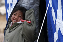 7.1級(jí)強(qiáng)震襲來,家園坍塌,親人逝去。面對(duì)災(zāi)難,震區(qū)的許多孩子表現(xiàn)出了令人感動(dòng)的堅(jiān)強(qiáng)。孩子們,我們由衷地希望這份堅(jiān)強(qiáng)能超越你們的悲傷,因?yàn)榫驮诿魈欤腋_會(huì)回到你們身旁。中新社記者 盛佳鵬 攝