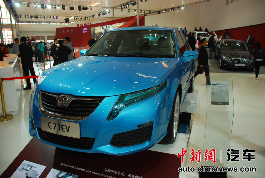 第十一屆北京國際車展23日開幕,在本屆以“暢想綠色未來”為主題的車展上,新能源車成為最大亮點(diǎn)。圖為北汽C71EV電動車 王槊 攝