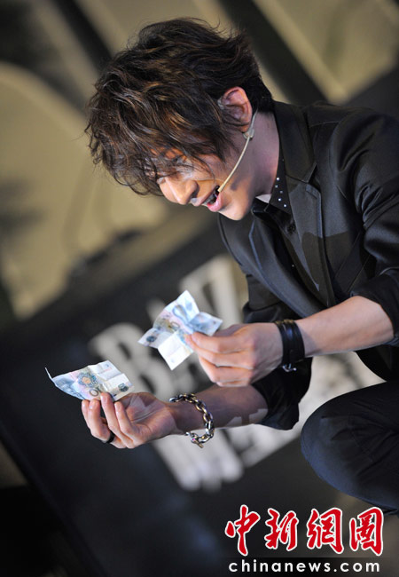 4月25日,由《時(shí)尚芭莎》雜志社主辦的第8屆“BAZAAR明星慈善夜”活動(dòng)在上海舉行,圖為劉謙為現(xiàn)場(chǎng)嘉賓表演精彩炫目的魔術(shù)。 中新網(wǎng)記者 金碩 攝