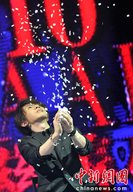 4月25日,由《時尚芭莎》雜志社主辦的第8屆“BAZAAR明星慈善夜”活動在上海舉行,圖為劉謙為現(xiàn)場嘉賓表演精彩炫目的魔術。 中新網(wǎng)記者 金碩 攝