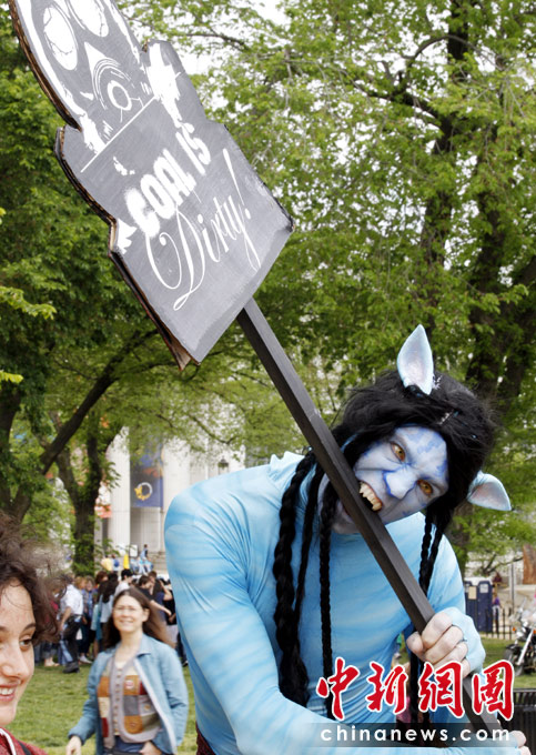 2010年4月25日,在美國(guó)首都華盛頓,兩名扮成電影《阿凡達(dá)》里納美人模樣的演員參加“氣候集會(huì)”演唱會(huì)。當(dāng)天,華盛頓舉行演唱會(huì),紀(jì)念“世界地球日”。4月22日是第41個(gè)“世界地球日”。
