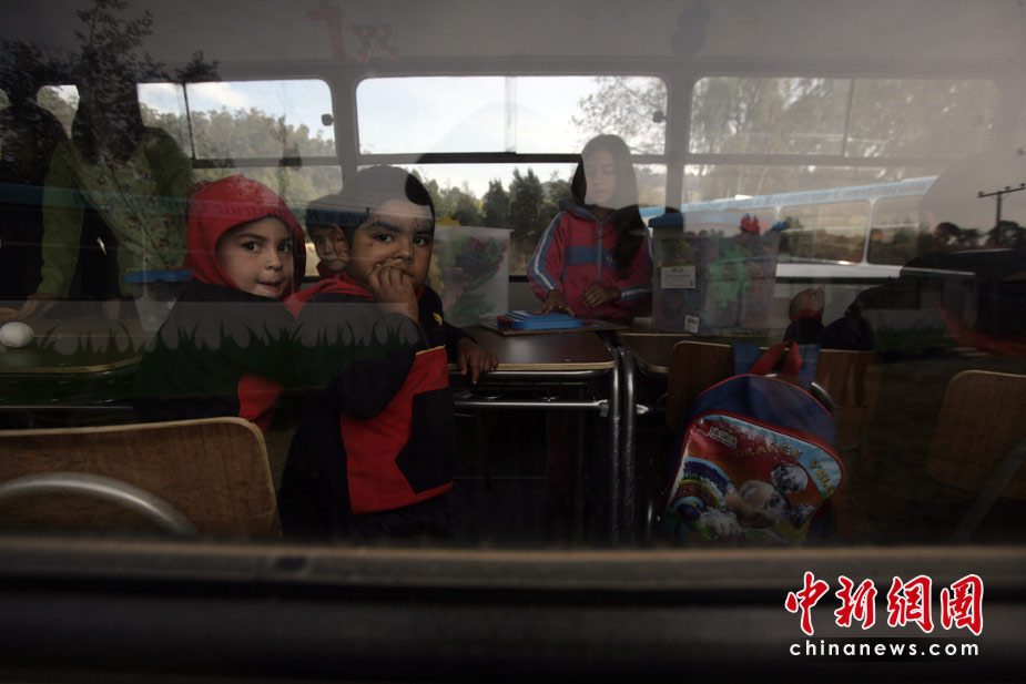 4月26日,今年2月遭受8.8級(jí)強(qiáng)烈地震的智利康塞普西翁市,兒童們?cè)凇鞍褪繉W(xué)!崩锷险n。