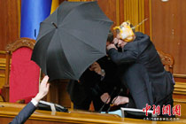 烏克蘭議長傘后躲雞蛋