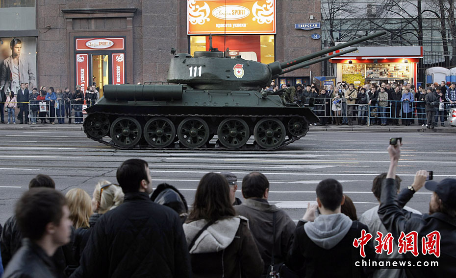 此次紅場閱兵包括兩部分內(nèi)容:歷史部分和現(xiàn)代部分。歷史部分由身穿衛(wèi)國戰(zhàn)爭時期軍服的士兵在鵝卵石道上進(jìn)行,同時還會有9輛T-34坦克和8輛SU-100自行火炮,F(xiàn)代部分由13輛老虎裝甲車、BTR-80裝甲車、BMP-3步兵戰(zhàn)車、T-90A坦克和S-400防空系統(tǒng)等。圖片來源:中國新聞網(wǎng)