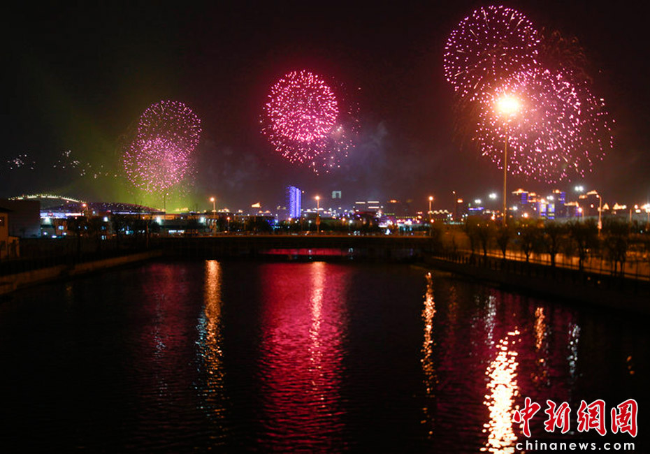 4月27日,上海浦東白蓮涇橋,絢麗的煙花。趙靜/CFP