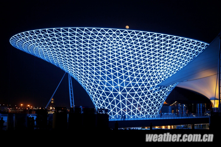 2010年4月27日,上海世博會開幕式彩排順利進(jìn)行。圖為世博園內(nèi)中軸線上美麗的世博。卞赟 攝
