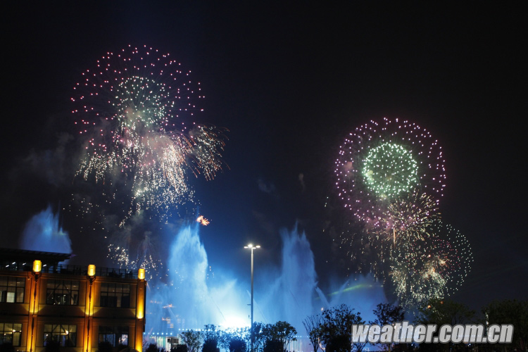 2010年4月27日,上海世博會開幕式彩排順利進(jìn)行。圖為噴泉與煙花一同表現(xiàn)世博會主題。卞赟 攝