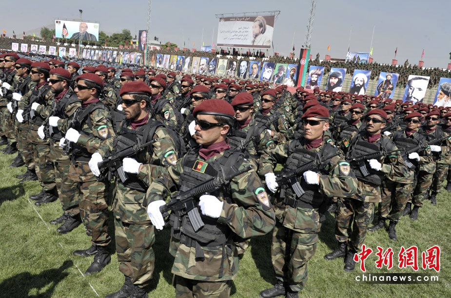 4月28日,阿富汗喀布爾,抗擊入侵勝利18周年的閱兵慶典在市中心體育場內(nèi)舉行。
