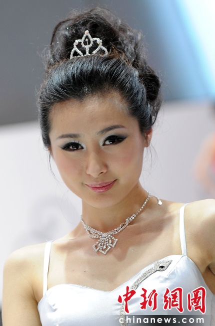 “第十一屆北京國際車展”是名車新品搶先亮相的舞臺,也成了車模們爭奇斗艷的場所,參觀者在車展中可以享受兩道視覺大餐。中新網(wǎng)記者 金碩 攝