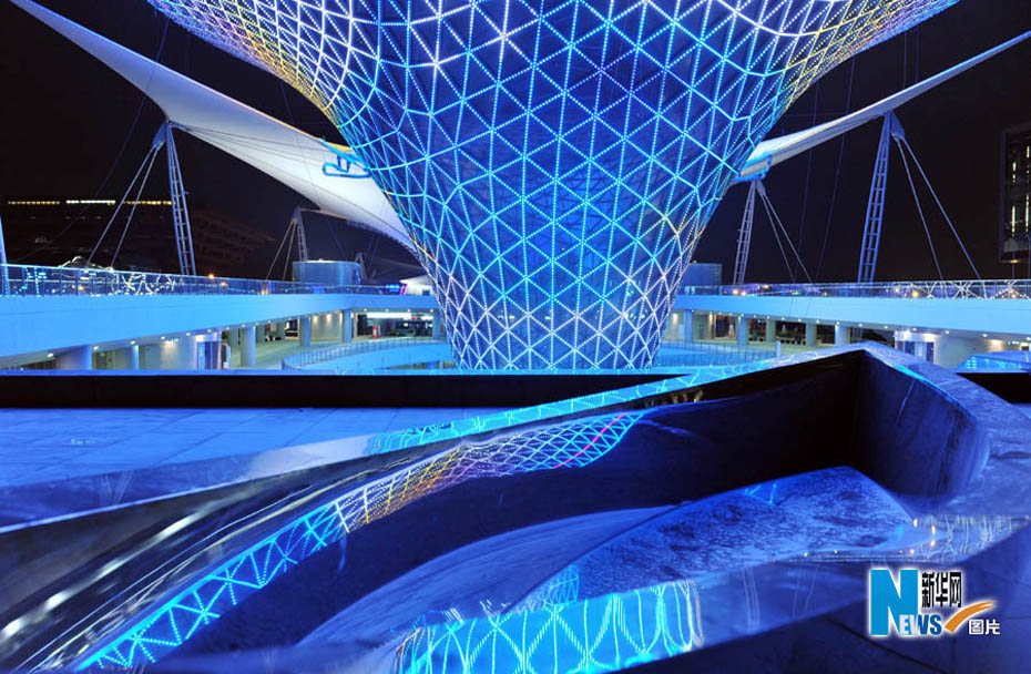 靜待開幕的世博園沉浸在一片暮色中,流光溢彩,給人無限遐想。從外灘到世博園,“夜”上海不斷延伸,讓人激情跳躍。圖片來源:新華網(wǎng)孫巍攝