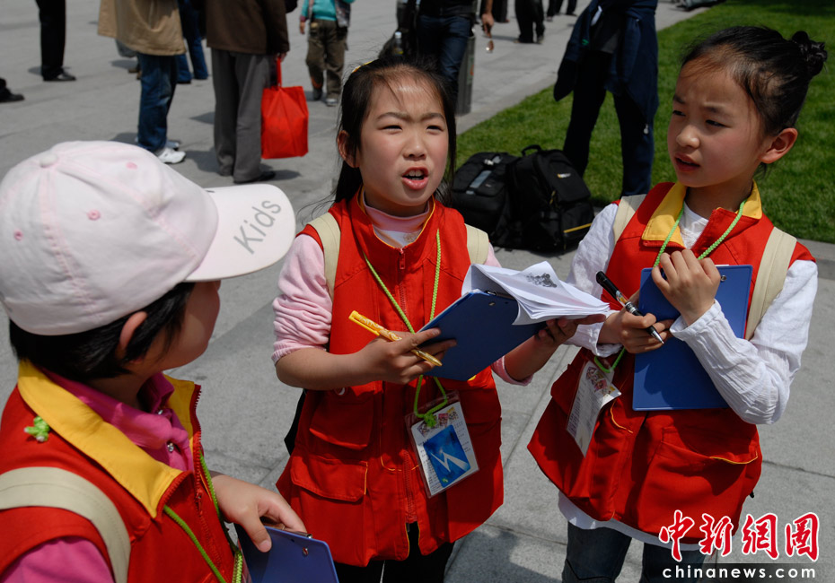 30日上午,記者在上海外灘采訪時遇到小主人報新聞學校的“小記者”們在采訪,成為他們今天的第一個采訪對象!靶∮浾摺眰冏铌P心的問題是關于世博會,“如何讓世界變得更美好”。她們都表示非常想去看世博會,最想看的是中國館,但是要留到最后看,“因為其它館都會拆掉,中國館會保留下來”!靶∮浾摺眰冋f,自己要從身邊小事做起,做有文明有素質的人,并表示希望自己將來成為真正的“大記者”,更好地報道上海。吳歆/文 王紅綱/圖