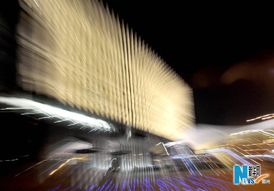 夜色下的世博園,迷離而夢(mèng)幻。圖為媒體中心。圖片來(lái)源:新華網(wǎng) 郭毅攝