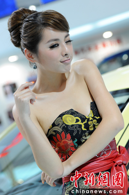 “第十一屆北京國際車展”是名車新品搶先亮相的舞臺,也成了車模們爭奇斗艷的場所,參觀者在車展中可以享受兩道視覺大餐。中新網(wǎng)記者 金碩 攝