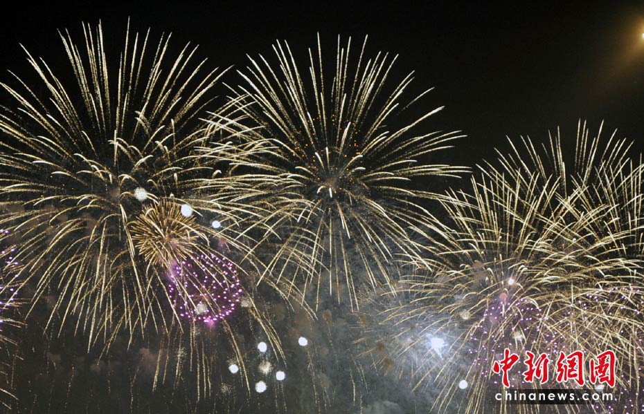 4月30日晚,2010年上海世博會(huì)開幕式在上海世博園世博文化中心舉行。21時(shí)28分,世博會(huì)焰火燈光表演開始。黃浦江兩岸綿延3.28公里同時(shí)奏響火樹銀花不夜天的華彩世博樂章。中新網(wǎng)記者 王紅綱 攝