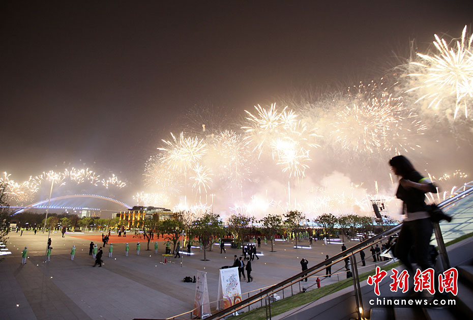 4月30日晚,2010年上海世博會(huì)開(kāi)幕式在上海世博園世博文化中心舉行。21時(shí)28分,世博會(huì)焰火燈光表演開(kāi)始。黃浦江兩岸綿延3.28公里同時(shí)奏響火樹(shù)銀花不夜天的華彩世博樂(lè)章。圖片來(lái)源:中國(guó)新聞網(wǎng)