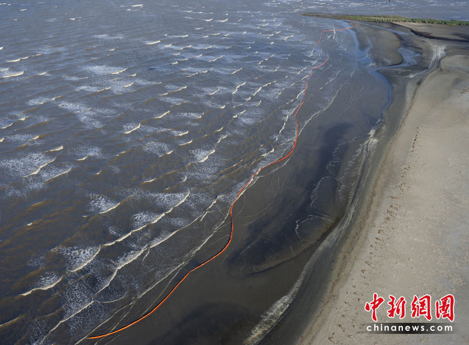 4月30日,在美國路易斯安那州海岸,為阻隔原油擴散而設(shè)的護欄帶被海風浪沖到岸邊。當天,美國總統(tǒng)奧巴馬下令調(diào)查墨西哥灣石油鉆井平臺爆炸事件,以避免將來類似事件再次發(fā)生。平臺爆炸沉沒后泄漏的原油當天已漂至美國沿岸。圖片來源:中國新聞網(wǎng)