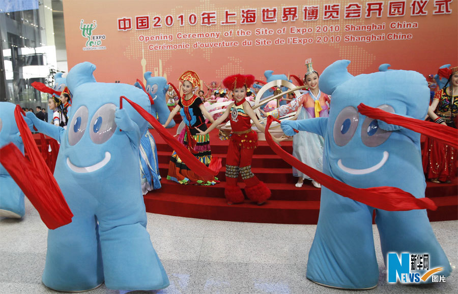5月1日,中國2010年上海世博會開園儀式在上海世博園世博中心舉行。這是小朋友們在開園儀式上表演。裴鑫攝(新華網(wǎng))