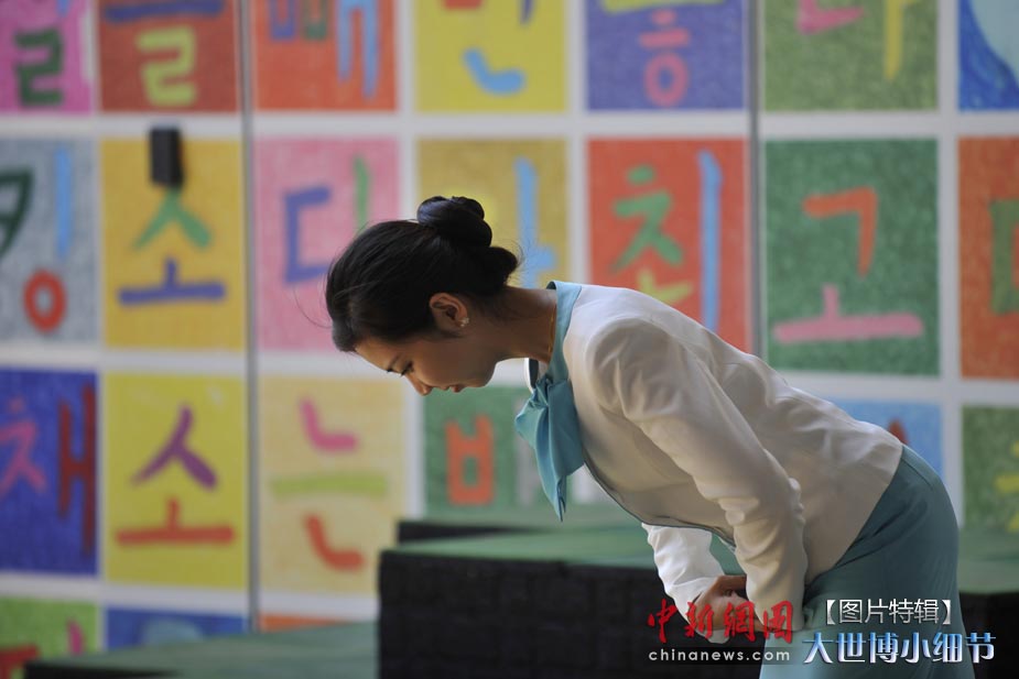 5月1日,上海世博會(huì)正式開園,當(dāng)日有20萬人次的游客參觀了世博園。世博首日,許許多多的小細(xì)節(jié)都帶給人一種全新的體驗(yàn)。圖為韓國(guó)館禮儀小姐以甜美的笑容面對(duì)第一批進(jìn)館的游客。中新網(wǎng)記者 王紅綱 攝