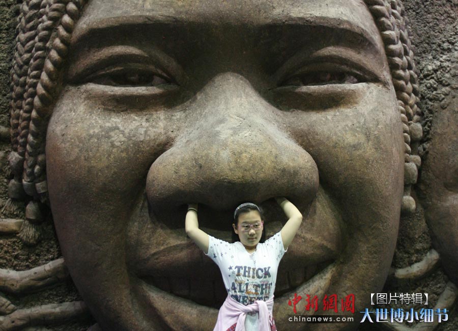 5月1日,上海世博會正式開園,當(dāng)日有20萬人次的游客參觀了世博園。世博首日,許許多多的小細(xì)節(jié)都帶給人一種全新的體驗。圖為一個小女孩在上海世博會非洲聯(lián)合館的笑臉墻”前留影。中新社發(fā) 蘇丹 攝