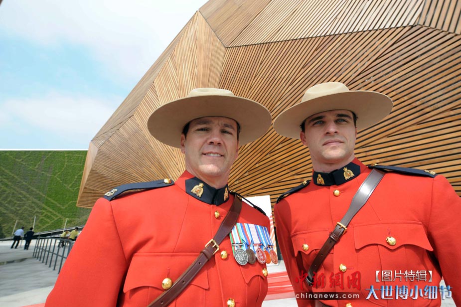 5月1日,上海世博會(huì)正式開(kāi)園,當(dāng)日有20萬(wàn)人次的游客參觀了世博園。世博首日,許許多多的小細(xì)節(jié)都帶給人一種全新的體驗(yàn)。圖為兩名加拿大騎警在加拿大館前亮相。中新社發(fā) 陳文 攝