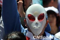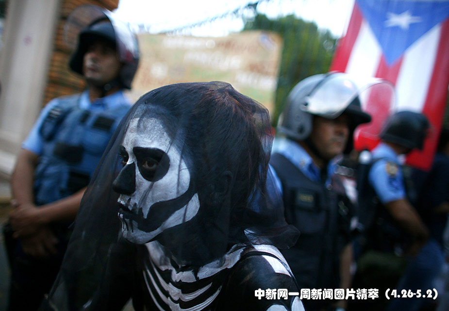 26日(周一),波多黎各,一名學(xué)生身穿怪異服飾抗議學(xué)費上漲。