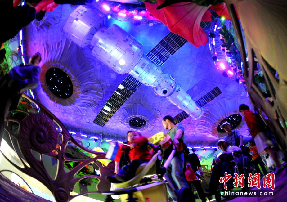 5月2日,上海世博園俄羅斯館內(nèi)的奇幻景觀吸引吸引許多兒童前往參觀!皟和壑械奈磥(lái)世界”是俄羅斯館所反映的重要主題。中新社發(fā) 廖攀 攝