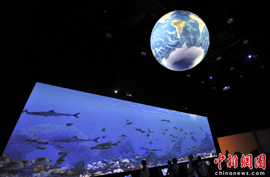 “人與海洋的和諧共存”是2012年麗水世博會(huì)的口號(hào),在該展區(qū),游客可以通過電腦屏幕設(shè)計(jì)一條電子魚,然后“放生”到大屏幕組成的“海洋”中進(jìn)行水質(zhì)監(jiān)測(cè),這些互動(dòng)內(nèi)容都引發(fā)游客極大的興趣。中新網(wǎng)記者 王紅綱 攝
