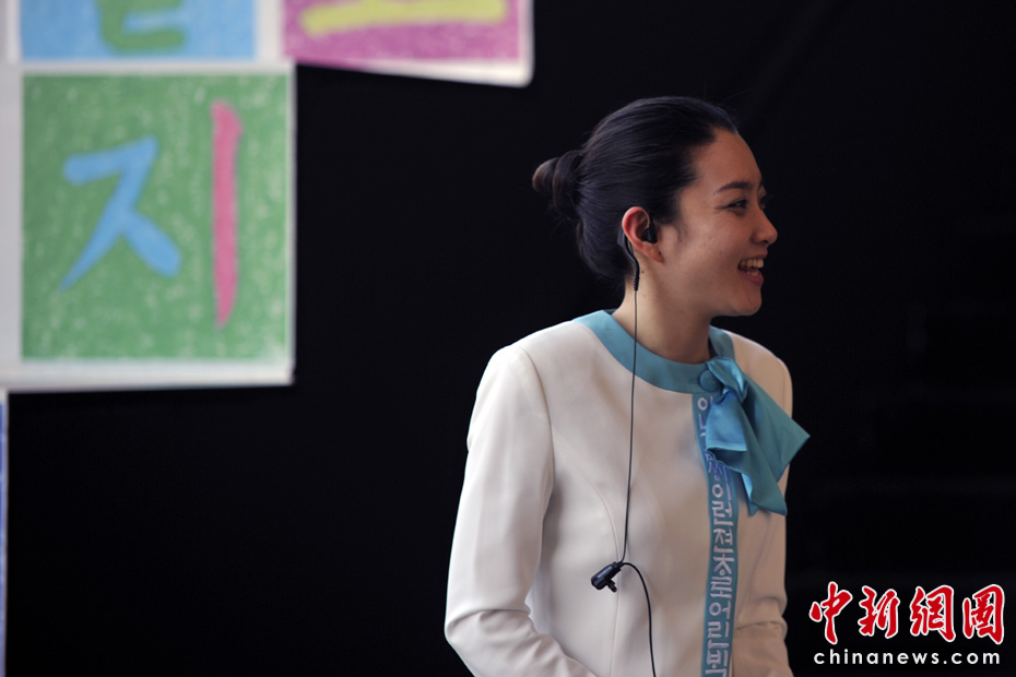 另外韓國(guó)館里的另一道風(fēng)景是溫柔美麗的禮儀小姐。中新網(wǎng)記者 王紅綱 攝
