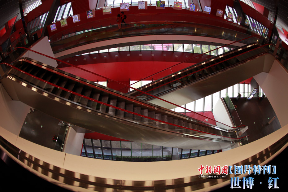 紅色象征著熱量與活力,紅色也象征著興奮與激情,在世博園區(qū)內(nèi)游覽,總會(huì)有一抹濃艷的紅色闖入到記者鏡頭之中,讓世博變得更加火辣。圖為中國(guó)館的扶梯。中新社記者 盛佳鵬 攝