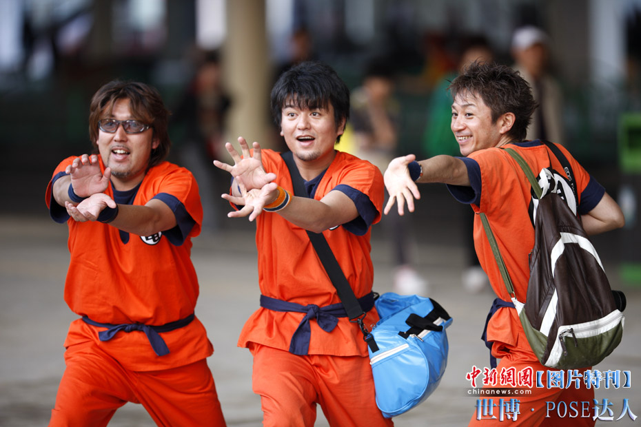 逛世博一定會(huì)拍照留念,擺一個(gè)漂亮有創(chuàng)意的pose尤為重要。面對(duì)著鏡頭,挺胸收腹翹臀,一個(gè)微笑,一個(gè)手勢(shì),秀出自己的活力。心中一定要默念:“我留下的不是照片,是心情!”圖為日本館工作人員擺出漫畫《七龍珠》里的小悟空的經(jīng)典pose。中新社記者 盛佳鵬 攝
