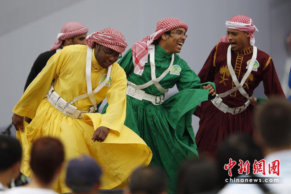 2010年5月4日,上海世博園區(qū)的亞洲廣場,沙特阿拉伯藝術(shù)團為游客表演。 中新社發(fā) 盛佳鵬 攝