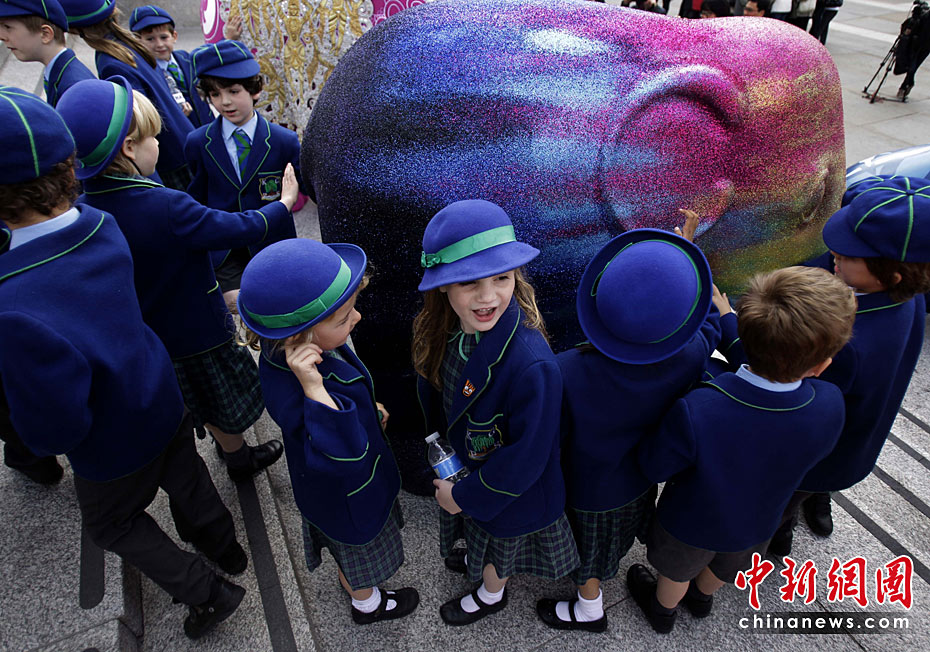 5月4日,2010年倫敦大象游行活動(dòng)當(dāng)日在特拉法爾加廣場(chǎng)啟動(dòng)。260個(gè)真象大小的彩繪雕塑將在倫敦各處展出,并將于6月30日拍賣為慈善組織籌款。圖片來源:中國新聞網(wǎng)